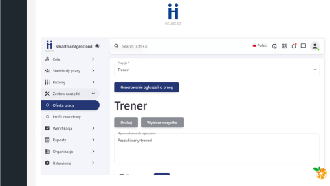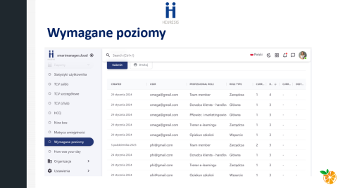 umożliwia dopasowanie szkolenia lub np. coachingu precyzyjnie do potrzeb pracownika, zbudowaniu planu szkoleń oraz informowania o nadchodzących szkoleniach.